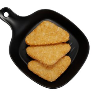 本產品以馬鈴薯為主要原料,保留細緻薯泥口感,經成型後製作成穩定的三角形狀,方便翻面與控制受熱均勻度。加熱後表層酥香明顯,內部仍保有柔軟綿密的口感,風味單純卻耐吃,適合各年齡層享用,也能輕鬆搭配不同料理情境。